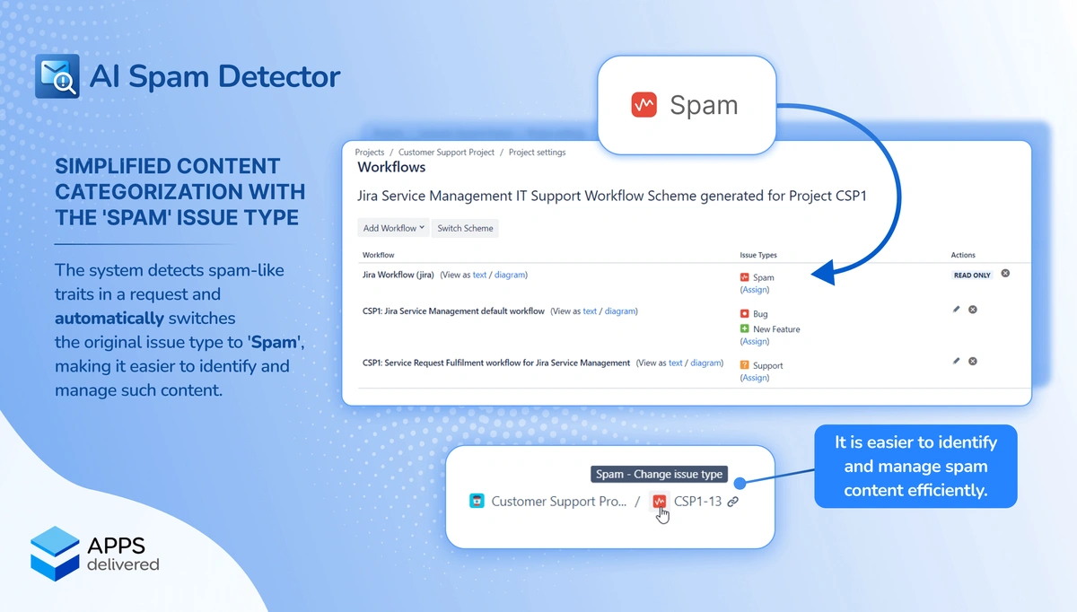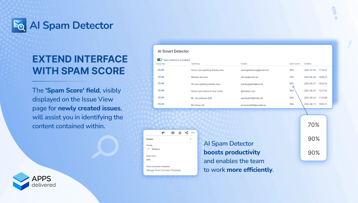 By effectively managing and reducing spam content, the tool improves user experience, boosts productivity and streamlines workflow. We are confident that the AI Spam Detector will significantly contribute to creating a spam-free environment within your Jira project, enabling your team to focus on what matters most - delivering exceptional results.